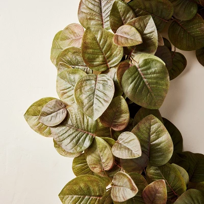 Add a natural look to your indoor space with this Faux Fall Leaf Wreath from Hearth & Hand™ with Magnolia. Featuring faux eucalyptus leaves that have realistic green coloring and detailing, this round wreath has a simple and clean design that pairs seamlessly with a variety of different decor styles. This faux wreath also has a lightweight design that makes it easy to hang and display for a crisp touch of greenery.