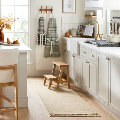 Make your indoor space a little more welcoming and stylish with this Patterned Border Stripe Area Rug from Hearth & Hand™ with Magnolia. Showcasing an allover stripe pattern with tassel trim for a stylish look, this woven runner helps you maintain a clean floor, while the flat-pile construction makes it’s easy to place in and around your living room or entryway.